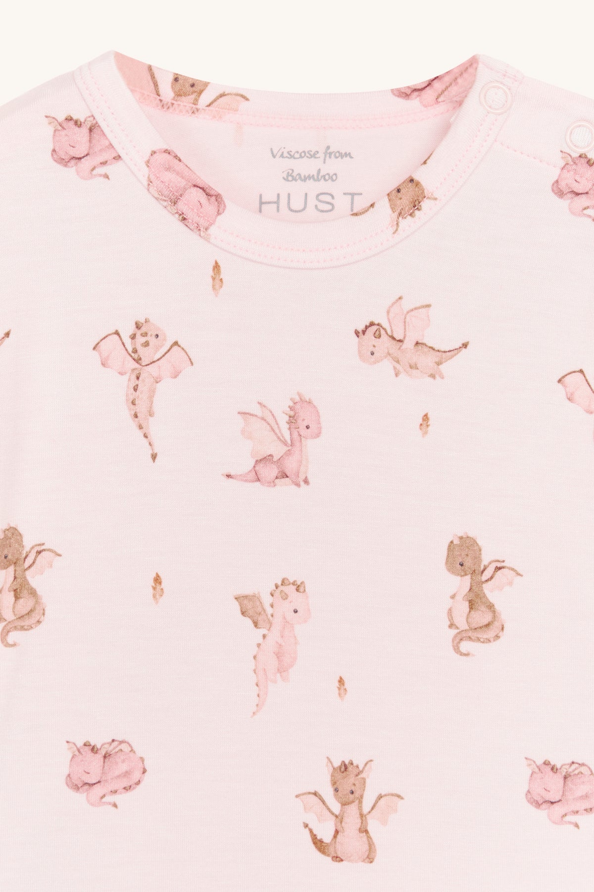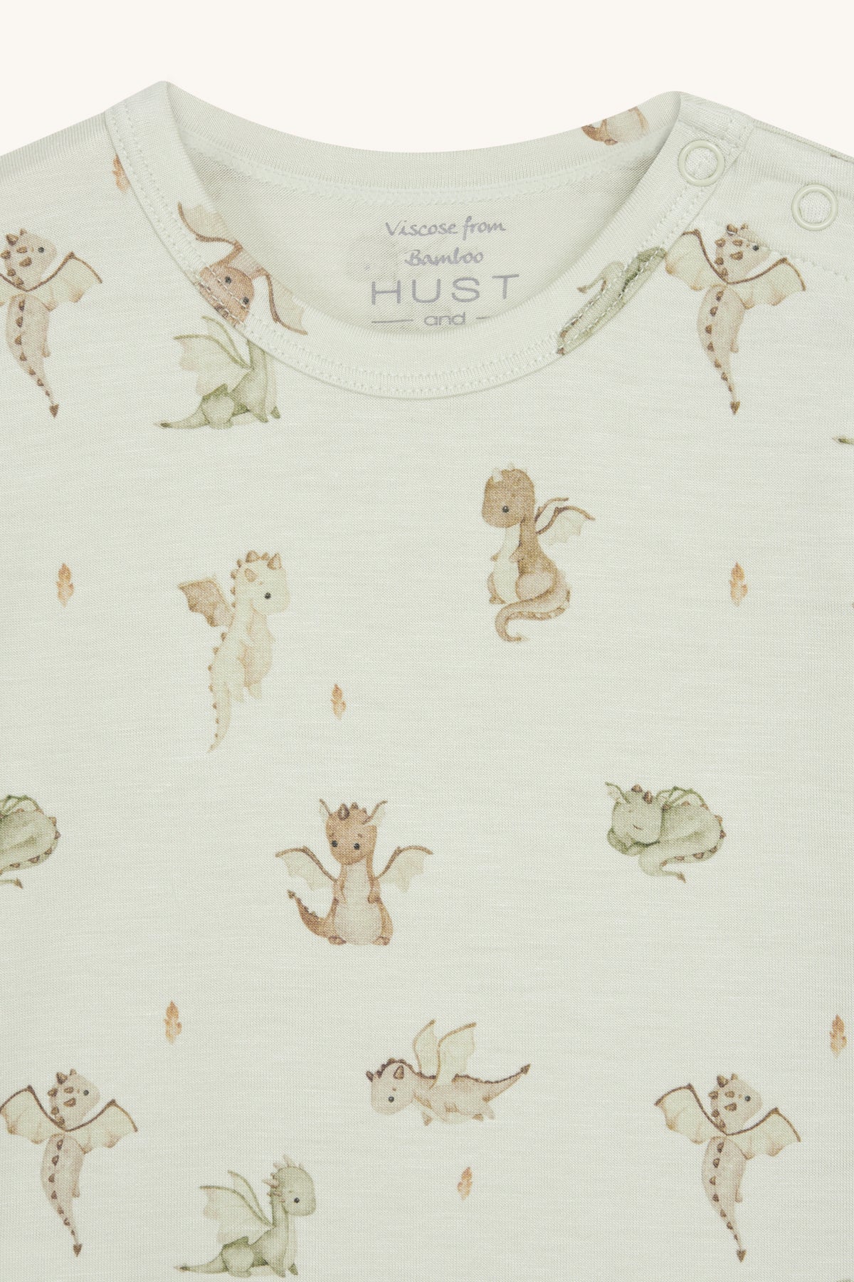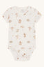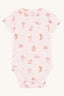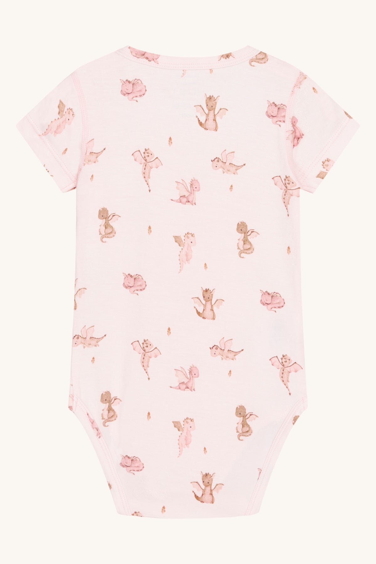 Kortærmet bodystocking i blød, strækbar viskose fra bambus med drageprint. Knapper på venstre skulder og mellem benene. Oeko-Tex 100®-certificeret.