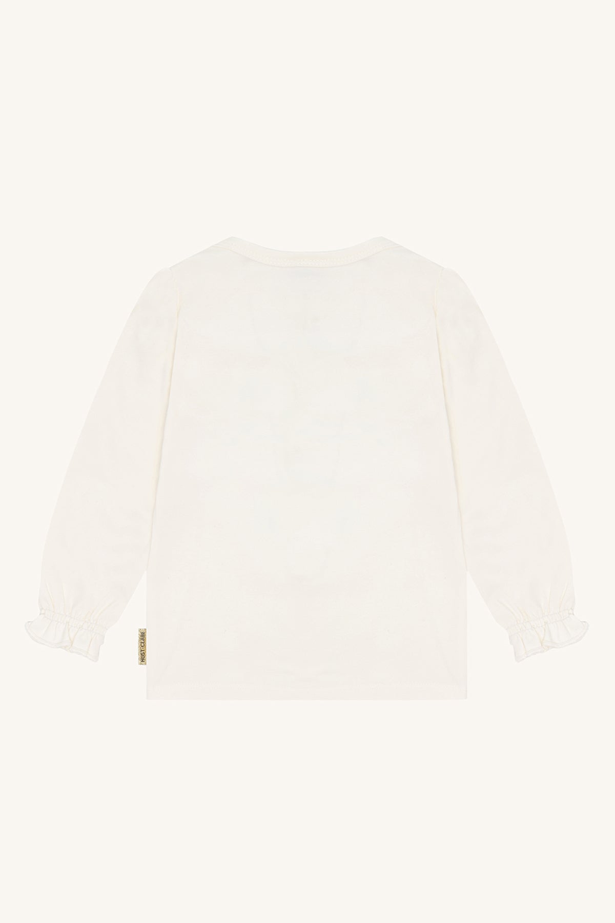 A dreamy long-sleeve tee sprinkled with gentle charm. The front features a beautifully embroidered hot-air balloon, floating through soft skies with delicate floral details and a tiny friend onboard. With its subtle ruffled cuffs and smooth organic cotton feel, this top is made for little adventures filled with imagination and comfort.